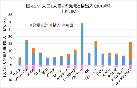 現在、GHG排出が実質ゼロ(GHG排出と森林等の吸収で合計ゼロ)の国は、幸せの国ブータンとアマゾン熱帯雨林に隣接するスリナムの二国と言われます。図-11.4から分かるように、EU諸国でGHG実質ゼロに最も近い国はスウェーデンです。