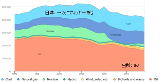 上図の日本の電源構成の変化からは、石油火力に代わってLNG火力と石炭火力が増加したことが分かります。