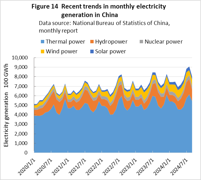coal consumption continues to grow. Figure 14 shows the trend in China 's