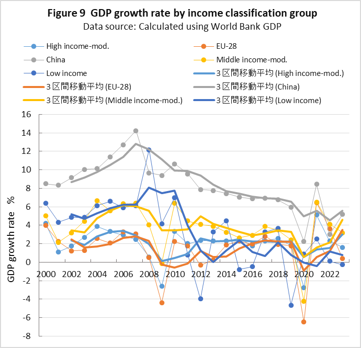 Figure 9 shows the trends in GDP growth rates for each group. This was